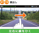 指先で記号を描いて操作できる「ジェスチャーコマンド」で、よく使う地図の縮尺変更、自宅への帰路設定、登録したお気に入りポイントの呼び出しなどが瞬時に可能。また、音楽およびビデオ再生中の頭出しや、ガイドブック閲覧中のページ送りなども簡単です。