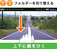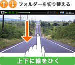 上から下に線を引けば、ひとつ前のフォルダーに切り替わり、下から上に線を引けば、ひとつ後のフォルダーに切り替わります。