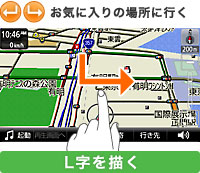 L字または逆向きのL字を描けば、「お気に入り1」や「お気に入り2」に設定してある場所へのルート探索が開始されます。
