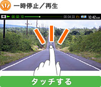 音楽・ビデオ再生時に画面にタッチすれば、再生が一時停止。もう一度画面にタッチすれば、停止した位置から再生が再開されます。写真閲覧時には、スライドショーの開始/一時停止ができます。