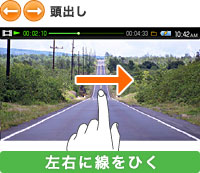 音楽・ビデオ再生時に、左から右に線を引けば次の曲/ビデオの頭出し。右から左に線を引けば再生している曲/ビデオの始まりに戻ります。写真閲覧時には、それぞれ次の写真/前の写真に切り替わります。