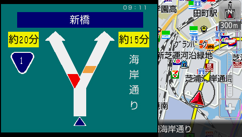 「○○交差点を右」と、交差点名まで音声で知らせてくれるので前方をしっかり見ながら運転できます。