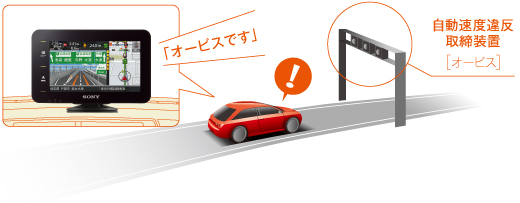 全国の自動速度違反取締装置(オービス)が設置されている地点を収録。前方にオービスが近づくと、音声でドライバーに安全運転を促します。