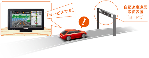 全国の自動速度違反取締装置(オービス)が設置されている地点を収録。前方にオービスが近づくと音声でドライバーに安全運転を促します。