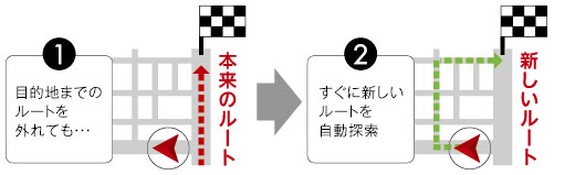 走行中にルートを外れても、すぐに新しいルートを自動探索して、ルートガイドを続けます。