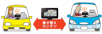 本体もクレードルも、簡単に取り外してすぐに取り付けられるから、1台あれば、複数のクルマで使えます。また、NV-U76VT/U76V/U35のクレードルはコンパクトに折りたため、持ち運びに便利です。