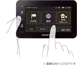 画面をなぞるだけで操作できる「ジェスチャーコマンド」で、地図の縮尺変更、自宅への帰路設定、登録したお気に入りポイントの呼び出しなどが瞬時に可能。また、音楽およびビデオ再生中の頭出しや、ガイドブック閲覧中のページ送りなども簡単にできます。