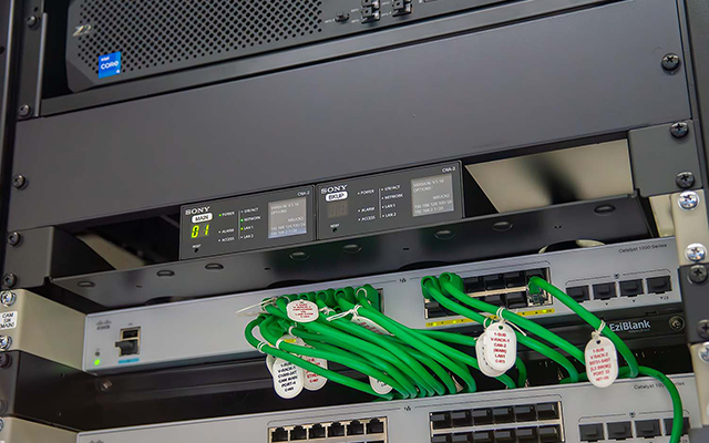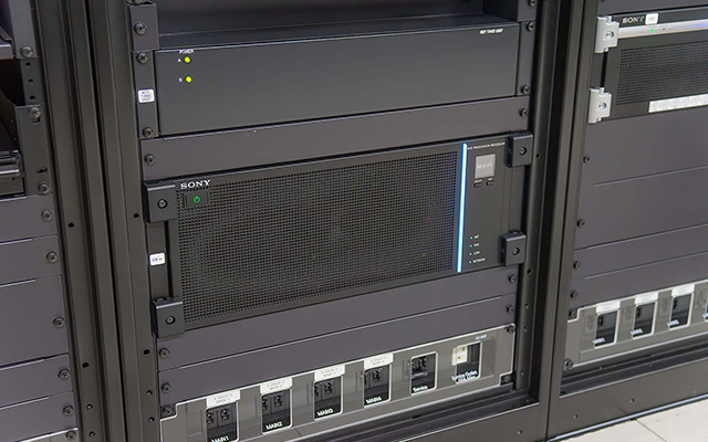 今回、メインのモニターパネルにはマルチビューアーを導入し、マルチビューアー用には法人向けブラビア「BZ40Lシリーズ」を導入しました。メインのモニターパネルに75インチの『FW-75BZ40L』を2面、音響卓と照明卓に55インチの『FW-55BZ40L』を各1面の計4面を配置しています。メインモニターには32型業務用4K液晶モニター『PVM-X3200』、各卓のピクチャーモニターには18型マルチフォーマット液晶モニター『LMD-A180』を配置しています。マルチビューアー1台からメインのモニターパネル2面、もう1台から音響卓・照明卓の2面、という構成のため、マルチビューアーの障害対策や遅延対策としてメインのモニターパネル下段には、『LMD-A180』を10台配置しています。