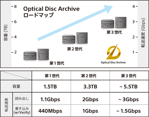 オプティカルディスク・アーカイブは2013年に第1世代を発売開始しました。2016年には「Archival Disc」を採用した容量、転送速度が約2倍となる第2世代を開発し、さまざまな業界で採用が広がりました。