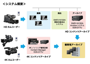 また、オプティカルディスク・アーカイブとともに導入したSWEV-N100A Archiveシステムでは、光ディスクの特長である高速なデータアクセスを生かし、オプティカルディスク・アーカイブと送出サーバー間での直接ファイル転送にも対応しており、より効率的な運用が可能になります。