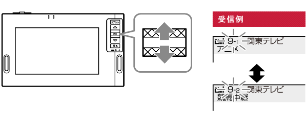 番組が複数になっている場合、ジョグレバーを上下に動かして複数サービスの番組を選局することができます。