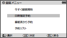 録画メニューの『日時指定予約』では、予約設定時に録画の対象としてプリセットされた放送局を指定します。この場合サービス1(メイン)側の番組が録画予約されるので、右図の番組2や番組4を録画予約することはできません。