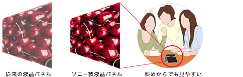 アングルによる色の変化を最小限に抑えた、広視野角の高性能液晶パネルを採用。上下左右の斜めからでもしっかりと色合いを保ちます。