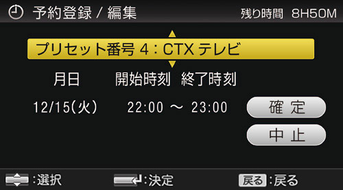 放送日、時間、放送局を指定して、一ヶ月先までの予約が可能です。