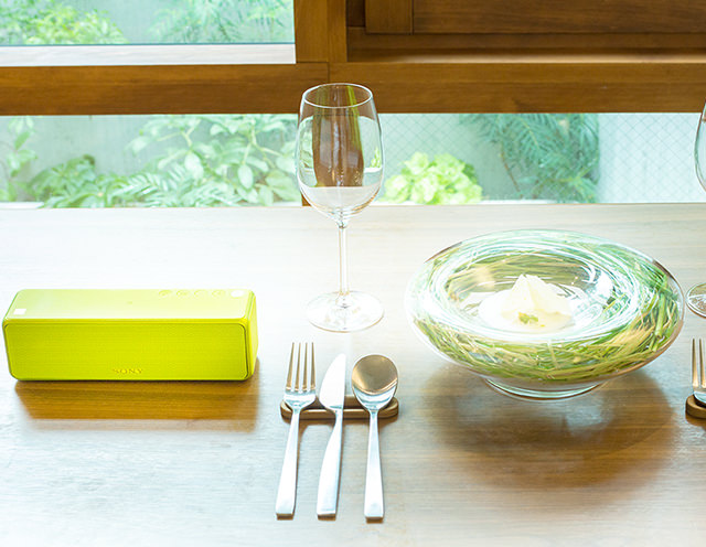- ハイレゾスピーカー、ハイレゾ音源で自然音を流すと、よりその場に立っているような感覚にも。過去の自分の記憶が音によってよみがえり、食事がより豊かな体験になる
