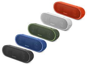 「SRS-XB10」はどこにでも持ち運べるコンパクトさながら、46mm口径のフルレンジスピーカーユニットによる高音質と、低音増強振動板ユニット「パッシブラジエーター」による重低音が特徴。ワンタッチでスマホと接続できるNFC機能(*1)を搭載しているので、Bluetoothで簡単にスマホと接続できて、自分のプレイリストをみんなとシェアできます。もちろん置いて使うこともできるので、食事シーンの盛り上げにも最適。