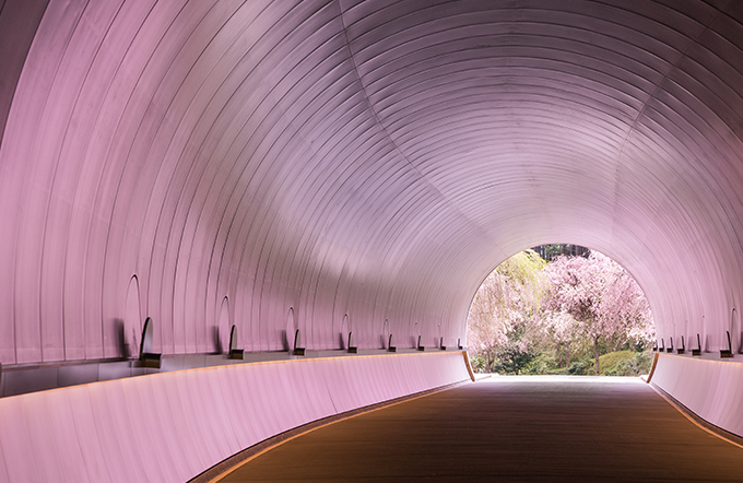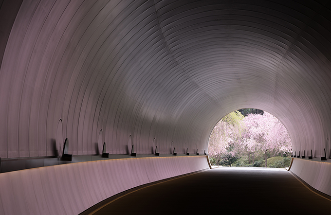 トンネルに反射した桜色が美しく印象的なこちらの作品は、滋賀県・ミホミュージアム(※)の敷地内にあるトンネルで撮影されたもの。トンネルのカーブによって、桜色の世界がまるで無限に続いていくかのような広がりを演出しています。この写真を撮影するポイントは3つ。