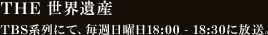 番組について詳しくはこちらさらに、2013年6月からは新たなシリーズとしてBS-TBSにて第1、2土曜日17:00 - 17:30に『THE 世界遺産4K PREMIUM EDITION』を放送中。4Kで撮影・編集・仕上げの制作すべてを行う、国内初の全編4Kレギュラー番組を4K対応ブラビアにて楽しんでほしい。