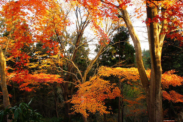 最後は、高尾山の頂上にあるもみじ台付近から、紅葉を撮影した。このもみじ台からは、天気がいいと富士山が見える。高尾山の名前の由来は富士山と大きく関係している。神話では高津神が住んでいるとされる場所を高天原と呼んだ。高天原とは富士山のことで、そこから連なる山並みの端にあるのが高尾山。富士山から連なる様子がまるで尾のようなので高天原の尾=高尾と呼ばれるようになったと言われている。ここからの景色は、まさにそのことがよくわかる。