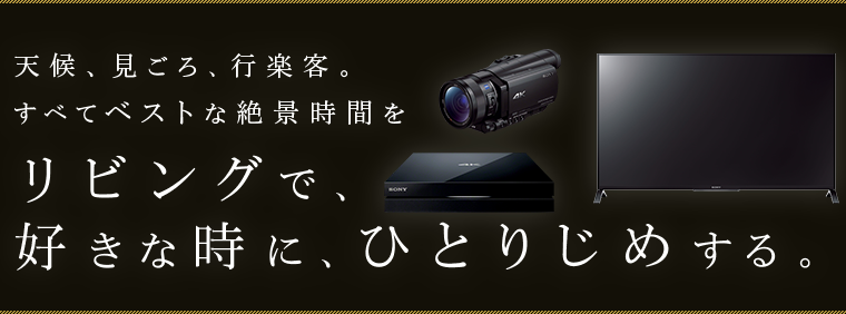 しかし、今は枝を折ることは禁止されているので、持ち帰ることなど許されないが、現代の我々には、4Kハンディカムと4Kブラビアがある。美しい紅葉も、野山を優雅に飛び回る鳥のさえずりも、木々の間を駆け巡るそよ風の音も、目の前に広がる音まで持って帰ることができるのは、古(いにしえ)の人には考えられないだろう。4Kハンディカムの高速画質処理エンジン「BIONZ X」なら、葉の表面に日が当たる輝きも、色飛びすることなく撮影できる。さらに、新発売の4Kメディアプレーヤーに外付けHDDを接続すれば、4K動画を貯めることができるようになったので、いつでも、好きな時に、手軽に、4Kブラビアで4K映像を見ることができる。4K 映像は今まで以上に手軽に扱えるようになったのだ。つまり、最高のBGV(バックグラウンド・ビデオ)が誕生する。リビングが、一瞬のうちに、あなたの心を癒してくれる空間になるだろう。