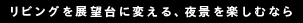 「昼間は、明るいのでビル、看板、人、自動車など街全体がはっきり見え、それはまるで具象画のようです。でも日が暮れ夜になると、闇と光とに二元化され、街はまるで抽象画のようになります。イマジネーションを膨らませ"見立て"をしながら夜景を見るのも楽しみのひとつです。みなさんも美術館などに行って、いすに座り、抽象絵画をじっと眺めながら、イマジネーションにふけった経験があると思います。抽象的な作品を見ていると、何か別のものに見えてきたり、そのものから別の話題になったり、行ったことのある街、会ったことのある人など、連想がどんどん広がっていきますよね。夜景も同じです。ましてそれがリビングで楽しめたら、家族と一緒に会話やイマジネーションは膨らみますよね。また、この季節、展望台は混んでいたり、屋上は寒いですから、リビングでゆっくりと夜景を見ながら、自分なりの見立てをして楽しむのもいいかもしれません。」