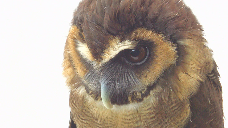他の鳥のようにバタバタせず、じっと周囲を見極めています。首が自在に曲がり、あらゆる角度に目が行き届く。耳の位置も左右異なり、周囲の情報を立体的に集める能力に長けています。そんなたたずまいには、威厳すら感じますよね。その一方で、映像のように、なでると目を閉じて、気持ちよさそうな、かわいい表情もする。魅力はそのギャップですよね」。
