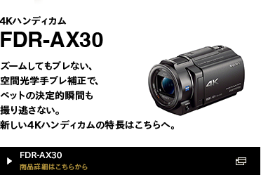 かけがえのない姿を、時間を、そのまま残しておきたいと願う人の気持ちに応える4Kハンディカム。今回は人間の時間よりも早く時を刻む動物たちの姿に迫ったが、生まれてあっという間に大きくなってしまうのは、人間の子どもでも、移り変わる自然でも同じこと。かわいく撮りたい、きれいに残したいという気持ちが、被写体への思いをさらに強め、いろいろな角度から撮り、ズームなどを駆使して撮影。後から4Kブラビアの大画面で見たときに、いつもなら気付かないペットの素顔、しぐさ、そして気持ちまで分かったりする、そんな新しい発見と出会える幸福を感じることができるはず。そんな思いも、まずは撮らないことには始まらないのだが、いつでも手軽に持っていけるコンパクトなサイズを手に入れた新しい4Kハンディカムだから、きっと決定的瞬間も、いつものかわいい笑顔も、ありのままに残すことができるはずだ。