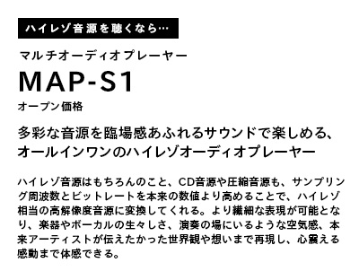 サンプリング周波数やビット数の多さにより、CDや圧縮音源では伝えきれなかったレコーディング現場の空気感やライブの臨場感まで感じ取ることができる。新発売のソニーのマルチオーディオプレーヤーシステム「MAP-S1」なら、この臨場感を如何なく体感できるだろう。