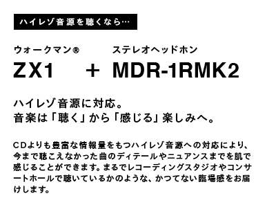 当初からヘッドホンとの組み合わせを想定して開発されたウォークマン「ZX1」は、深く沈みこむキレのある低音から、透明感のある中高域まで再生できるのだ。