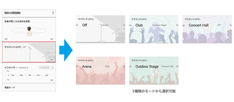 而且,无线耳机的三个产品都新支持了耳机专用应用程序“Sony | Headphones Connect”。具体功能虽然因产品而异,不过能够控制EQ和环绕声(VPT)功能,可以用个人喜好的音质享受音乐。