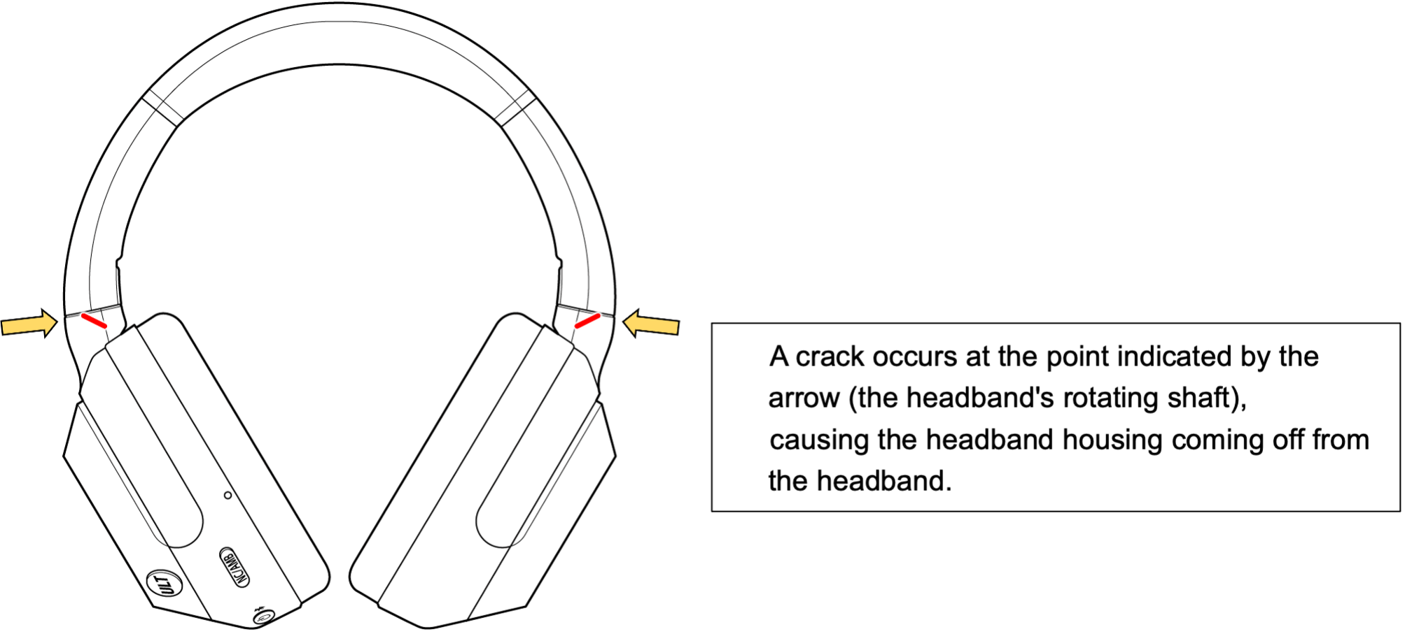 It has been found that cracks may occasionally occur on the rotating shaft in the joint between the headband and the headphone housing of the "ULT WEAR (WH-ULT900N)".
