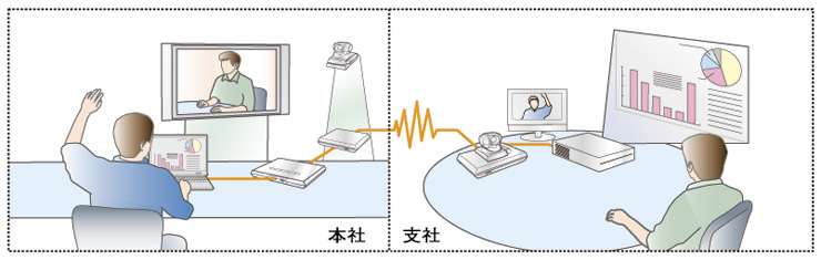 データソリューションボックス PCSA-DSB1S(別売)と組み合わせることで、PC画面とカメラ映像の両方を同時に送信でき、PC画面を鮮明な画像(*)で相手方のディスプレイに表示させることができます。