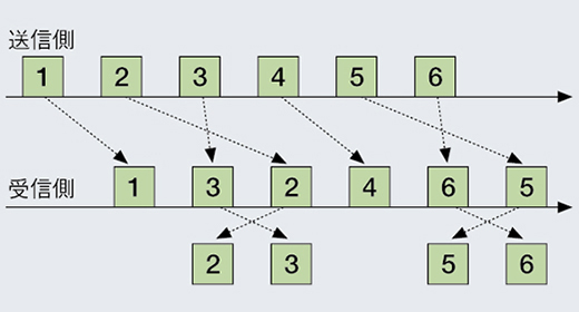 パケットロスの原因となるパケット順序誤りが発生した場合でも、リオーダー機能により正しい順序に修復。なめらかな映像や音声を実現しています。