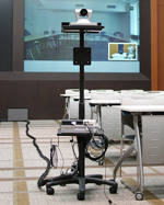 システム一式はキャスター付ラックに収容し、会議室内を自由に移動可能とした。