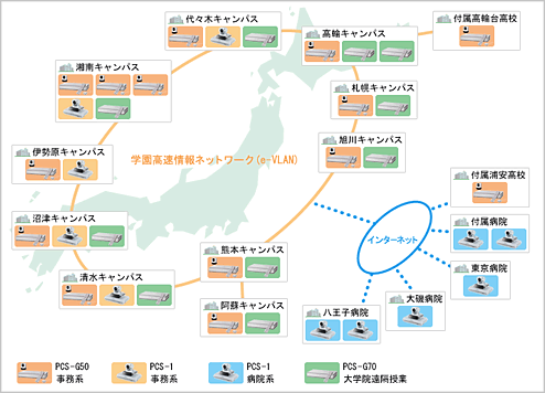 新しい東海大学の学内連携のために、ビデオ会議システムを導入。