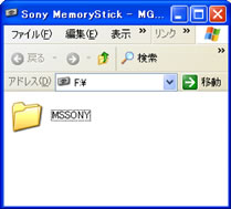 コピーが終わったメモリースティックが下記の階層フォルダとなっていることを確認する。 |
