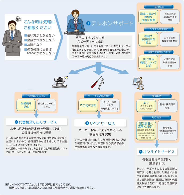 法人のお客様>ビデオ会議システム>サポート・お問い合わせ>サポートプログラムのご案内