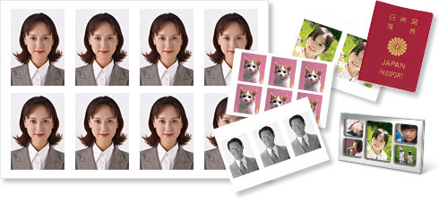 縦横サイズを設定してプリントできる「証明写真」機能。写真の大きさに応じて、プリンターが1枚の用紙にレイアウトします。パスポートや身分証明書、履歴書などのほか、定型サイズのプリントが入らない特殊な写真立てに飾りたいときにも便利です。