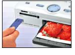 メモリースティックスロットとPCカードスロットを搭載*1。ソニーのサイバーショットやマビカ*2で撮影した“メモリースティック”を挿入して、パソコンなしでダイレクトにプリントすることができます。また、市販のPCカードアダプター*3を使えば、スマートメディアやコンパクトフラッシュなどからもそのままプリントが可能です。また、「DPOF(Digital Print Order Format)」に対応。サイバーショット本体で選んだ複数の画像をモニターなしで手軽にプリントすることもできます。