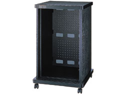 18Uサイズの木製・キャスター付のEIA規格標準ラック。黒色・木目調エンボス表面加工
