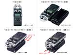 内蔵マイクによるPCM-D1単体での使用はもちろん、外部マイク入力によるマイクロホンアダプターを使用する場合も、横置き、縦置き装着とお客様の使用スタイル、設置環境に合わせた4-wayレイアウトでの運用が可能です。また横置き装着時には、本体とカメラ用の三脚を組み合わせてもご使用いただけます。