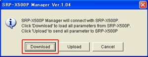 - SRP-X500P Managerを起動して、CommunicationメニューからConnectを選択し、Downloadをクリックする。