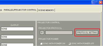 - PARALLEL/PROJECTOR CONTROLタブのPROJECTOR PROTOCOLボタンをクリックする。