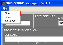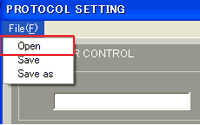 - PROTOCOL SETTING画面のFileメニューから、Openを選択する。