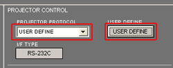 - PROJECTOR PROTOCOL選択ボックスで、USER DEFINEを選択する。