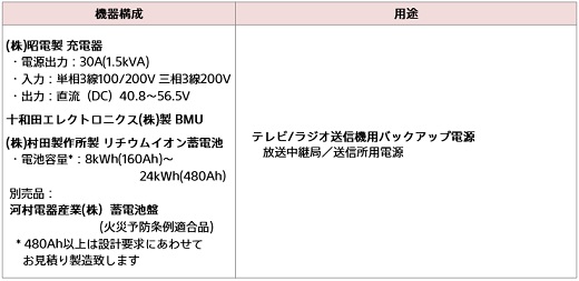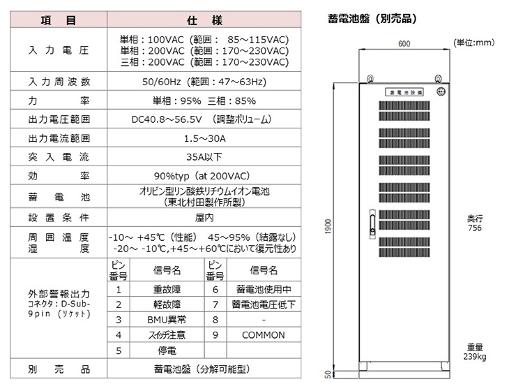 ・蓄電池盤(別売品)は火災予防条例に定められる条例キュービクル式蓄電池設備の適合品です。