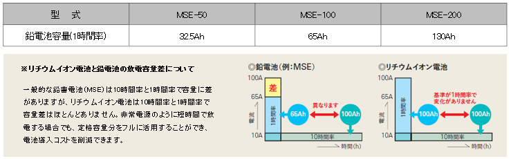 消防設備用非常用電源 15年間電池交換不要:維持費低減 鉛電池に比較して、体積2分の1、重量3分の1 ビル上層階にも設置できる軽量コンパクト設計 ゲリラ豪雨対策⇒上層階への設置にお勧めです。 (水害から非常電源消失を防ぐ) その他 受電盤等の制御電源 中央監視計装用電源 |