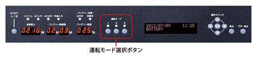 電池残量、接続時間(使用可能時間)、出力中/放電中、消費電力などの使用状況やバッテリー状態を表示するパネルを搭載しています。またワンボタンで、用途に合わせた運転モードを選択することができます