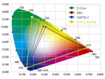 広色域有機ELパネルと独自の3D LUT(Look Up Table)を使用したカラーマネージメントシステムにより、放送規格ITU-R BT.709、EBU、SMPTE-Cの色域を正確に再現します。また、より広色域のデジタルシネマ向けの色域(*)にも対応しています。