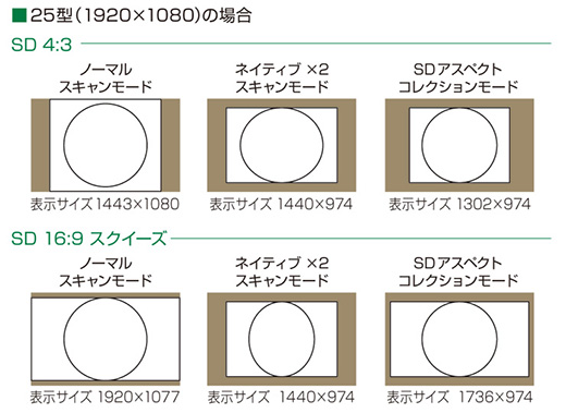 非スクエアピクセル信号のV方向を2倍に、H方向は画面アスペクトが正しくなるようにスケーリング処理すると同時に、アパチャー係数、フィルター係数などの画質を最適化して表示するモードを搭載しています。このモードを使用することにより、スケーリング処理による動画ボケを低減させることができます。またインターレースモードを併用することで、I/P変換によるボケも低減することができます。